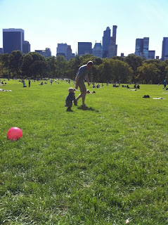 On Saturday we had a picnic in Central Park. The weather here is just starting to get cool and it is absolutely beautiful. We brought lunch, bubbles and a ball to the park to play with. Harlan and MacKay always have a blast together. They played soccer with the ball and played chase. She must have had a great time because she quickly fell asleep on the walk home and slept for a while after that. Here are a few pictures of MacKay and Harlan playing together.