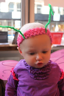 This year Harlan is a butterfly. I didn’t want to spend a lot of money on something that she probably will want to take off anyways (she is VERY picky about everything these days.) I had a tutu that I bought her a while back and found some wings and rigged her headband with some pipe cleaners and wha-la, you have a Butterfly Harlan.