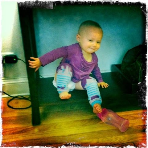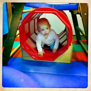 I let her walk out of our elevator to go into our apartment and instead of heading for the door, she heads straight for the stairs. She even tried to climb out of the crib the other day! Thank goodness for all of the classes that we take, because otherwise I might be in a little bit more trouble than I already am. She gets to climb on as many baby friendly things that the can in class. I even try to take to her as many open plays as I can so that she can get this out of her system.