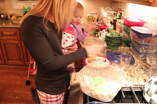 After getting into our pajamas we got out cookies and milk for Santa and carrots for the reindeer.  Last year Harlan was too young for this, so I made sure to soak up every moment with her.