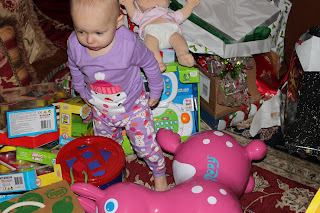 After putting Harlan down we individually bring out our presents for everyone to put under the tree.  The rest of the house closes their eyes and then “oohhs and ahhhs” when they see the gift under the tree. This is another tradition that MacKay’s family has passed onto ours.  Santa also delivered Harlan’s gifts that night and she must have been on his “nice” list because he left a lot of presents for her under the tree.