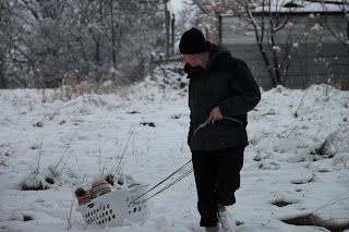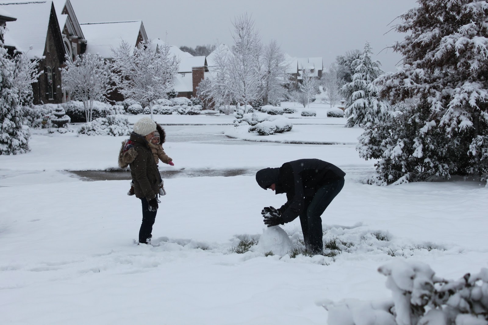 The day after Christmas we woke up to a Winter Wonderland.  It was absolutely beautiful to see everything covered in snow.  This is the second time that Harlan has seen snow, but the first time that she could actually comprehend what it was.  She didn’t like it very much and made someone hold her while outside.  We tried to cheer her up by building her a snowman.