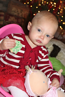 Of course right as we start putting cookies on the plate Harlan starts to steal some.  We had to replenish the plate a couple times so that Santa wasn’t left empty handed.